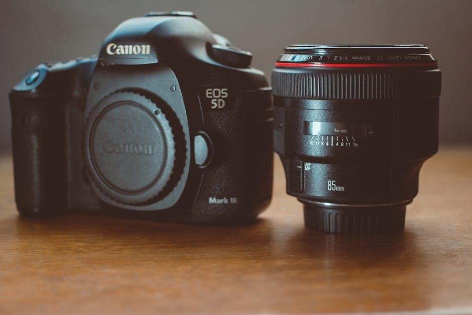 For “Lens Error,” check the lens connection and ensure compatibility. Regularly cleaning the contacts on both the camera body and lens can prevent this. If the LCD displays “Battery Low,” replace or recharge the battery immediately. Refer to the full manual for a comprehensive list of error codes and their corresponding solutions, ensuring optimal camera performance and preventing potential damage.