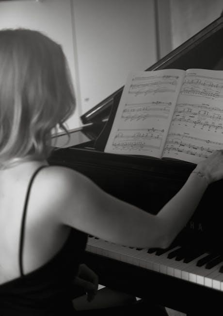 The Moonlight Sonata’s first movement relies heavily on pedaling to achieve its signature ethereal sound. The sustain pedal is used extensively to blend arpeggios and create a fluid, legato texture. Often, pedal markings indicate when to lift or shift, preventing muddiness. The sostenuto pedal can highlight melodic lines while maintaining harmonic depth. Proper pedaling technique ensures clarity and resonance, allowing the music to breathe naturally. Experimentation with pedal timing and pressure is crucial to match interpretative goals, as overuse can obscure details. Balancing sustain and clarity transforms the piece into a captivating auditory journey.