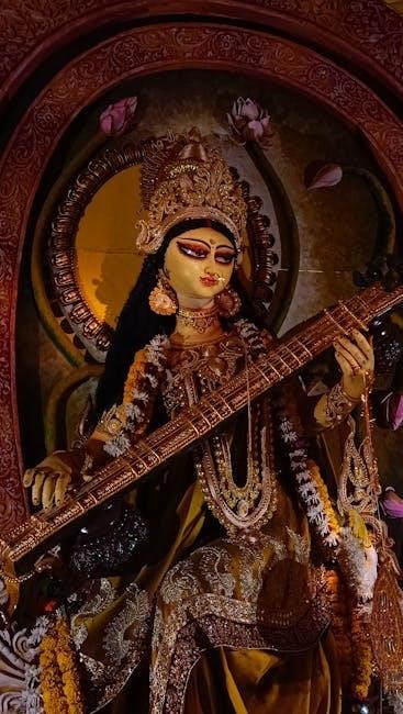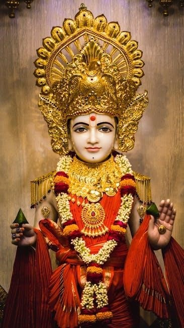 Lakshmi‚ the goddess of prosperity‚ fortune‚ and beauty‚ is intrinsically linked to Vishnu as his consort and divine energy (Shakti). She represents the auspiciousness that accompanies Vishnu’s preservation of the universe. Her presence signifies abundance‚ not merely material wealth‚ but also spiritual fulfillment and well-being.
