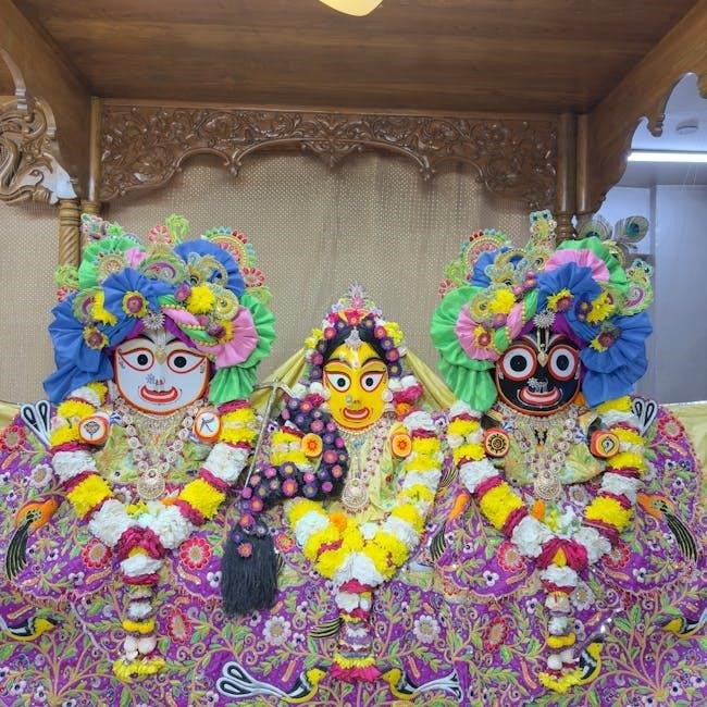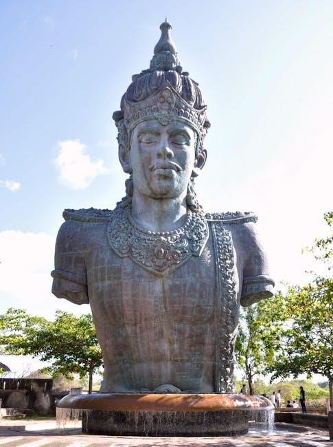 Krishna‚ a central avatar of Vishnu‚ embodies divine wisdom and strategic prowess‚ prominently featured in narratives accessible through a Vishnu Sahasranama in Sanskrit PDF. His role in the Mahabharata‚ particularly delivering the Bhagavad Gita to Arjuna‚ showcases profound philosophical teachings on duty‚ devotion‚ and selfless action.